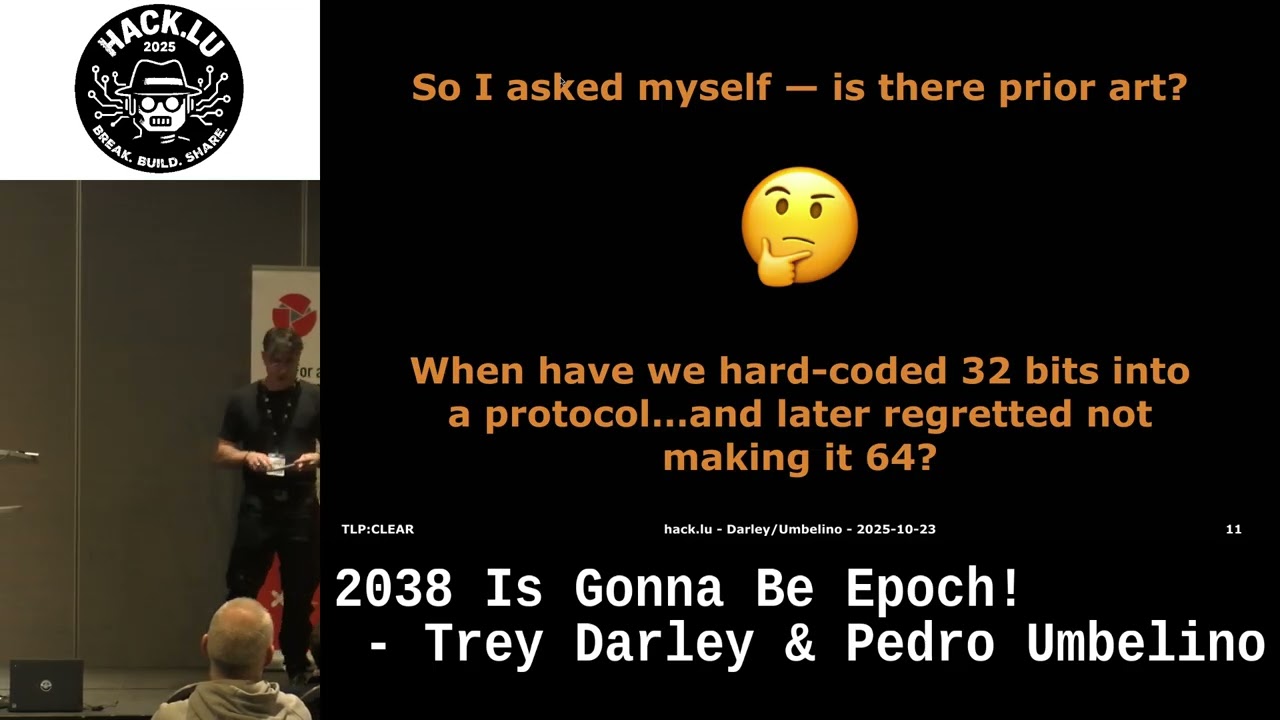 The Y2K38 bug presents a real challenge for any system reliant on 32-bit timestamps. In this session we will move beyond conjecture and demonstrate some of the Y2K38 bugβs real-world consequences in real devices. Our research documents how various systems and devices react as they approach and cross the 2038 threshold. We are documenting classes of failure modes triggered by these programming flaws, with the security researcher mindset.