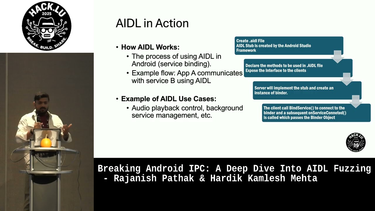 In this talk, we’ll deep dive inro fuzzing Android’s IPC mechanisms, focusing on the AIDL fuzzing in particular. We’ll dive into techniques for fuzzing AIDL interfaces to uncover vulnerabilities, discuss tools and frameworks, and highlight security issues we identified using this method.