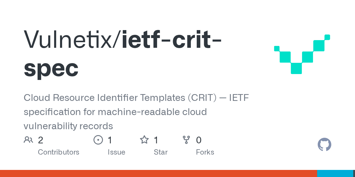 CRIT is trying to solve a real gap: package-oriented identifiers like CPE/PURL do not model cloud resources well, because cloud resources are runtime objects with provider-specific identifiers and exposure depends on timing, propagation, and remediation state. The draft is explicit about that, and the repo reflects it with dictionaries, schemas, samples, and a validator.