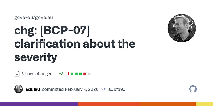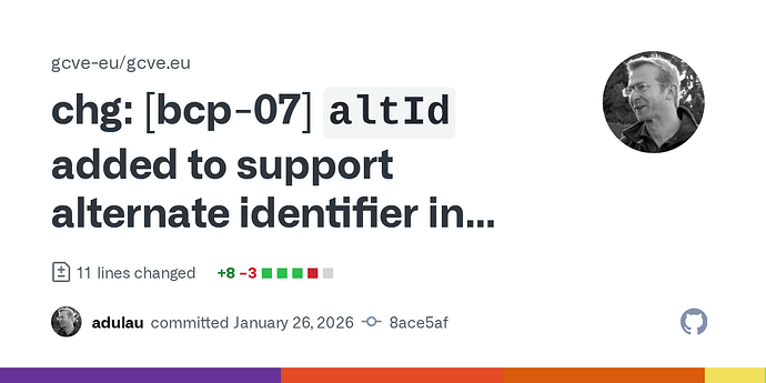 Finally, this separation is essential for machine-readability. Clear boundaries between identity and assertions enable automated correlation, reasoning, and downstream decision-making across heterogeneous data sources. GCVE KEV (BCP-07) treats exploitation knowledge as structured data, without overloading the vulnerability identity layer itself.