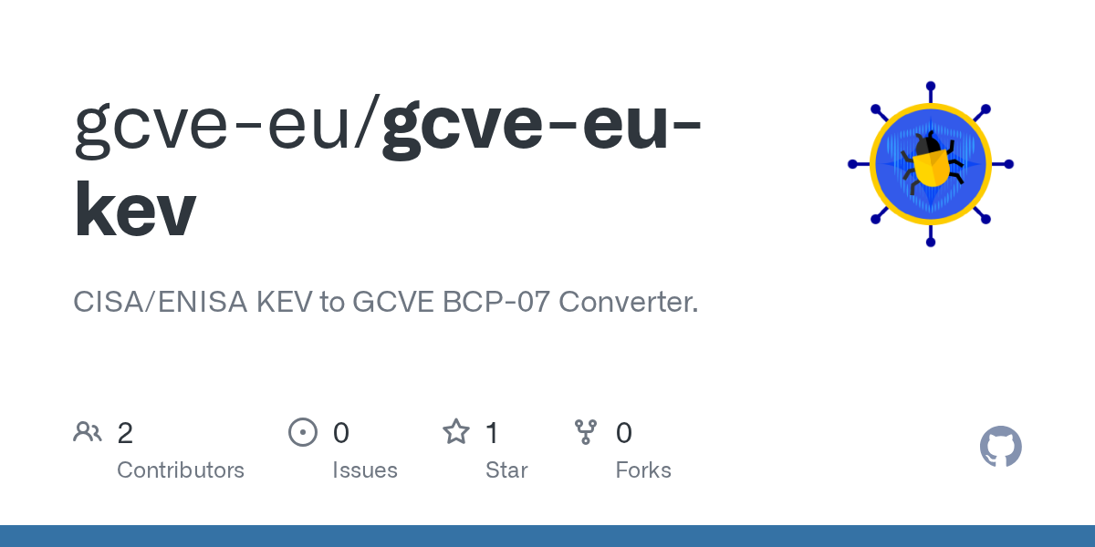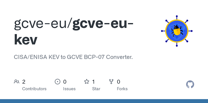 CISA KEV and ENISA CNW EUVD to GCVE-BCP-07 Converter: GitHub - gcve-eu/gcve-eu-kev: CISA/ENISA KEV to GCVE BCP-07 Converter.